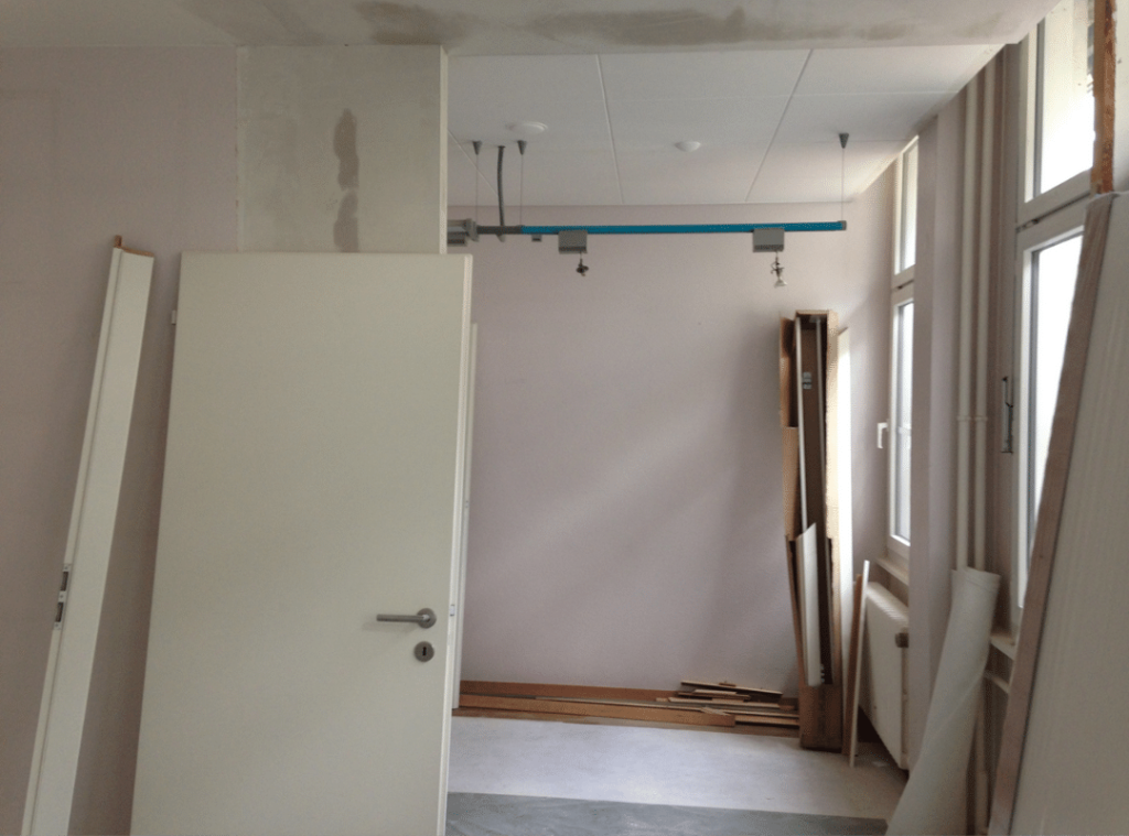 Therefore, the first major renovation began during the holiday period in 2014, taking care not to interrupt the work of neighboring colleagues. It started with the partial demolition of the office wall by the construction company Vilanova.